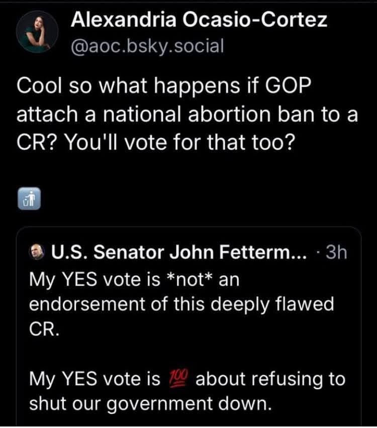 AOC took a moment to comment on a post by Senator John Fetterman, where she said this.