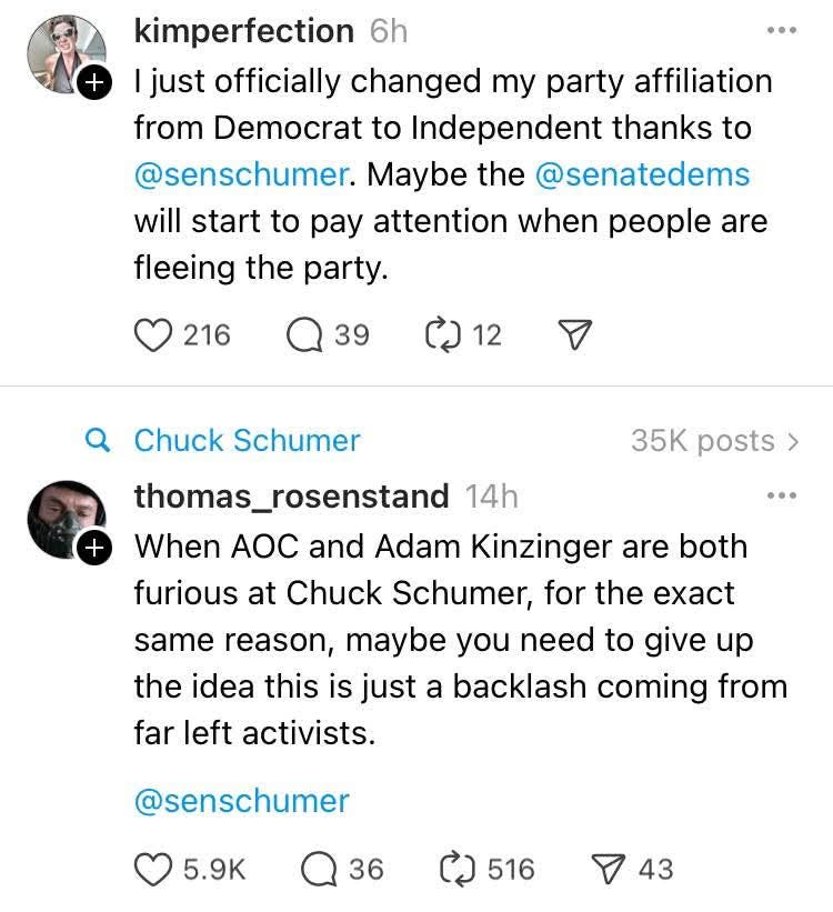 There has been outrage across the board since the 10 Senate Democrats helped the Trump regime advance their budget bill on Friday. With people calling for Chuck Schumer to step down as leader of the Democrats in the Senate.