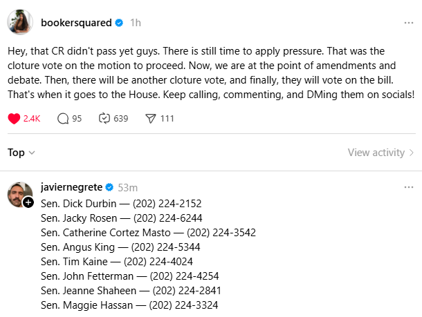 Earlier today, 8 Senate Democrats decided to join MAGA Republicans, and begin the process of ending the shutdown & reopening the Government.