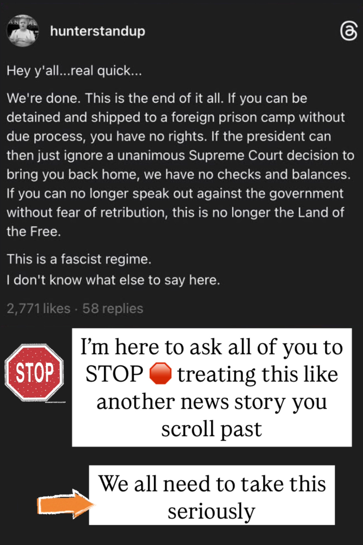 This literally made me cry- the first hours of arriving made me think that Garcia may not even be alive🆘‼️😭 the idea that children are detained and the 🤥🤡 has said “unproductive” people can be put in a caravan and sent out with criminals to other countries ‼️🆘🤬 the “cleansing” of America is close people‼️🆘😭 it’s happening snd congress has done NOTHING to stop it or even condemn it 🤢💩