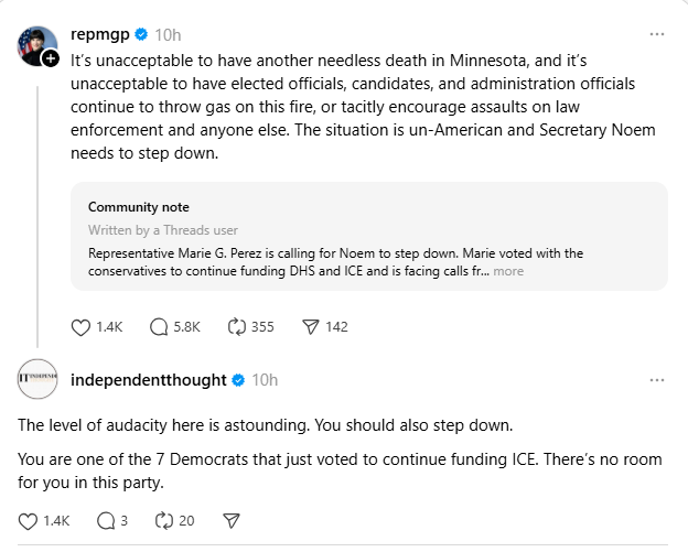 UPDATE 1/25: Since originally posting this article a few days ago, I have successfully ratioed Congresswoman Perez on Threads.