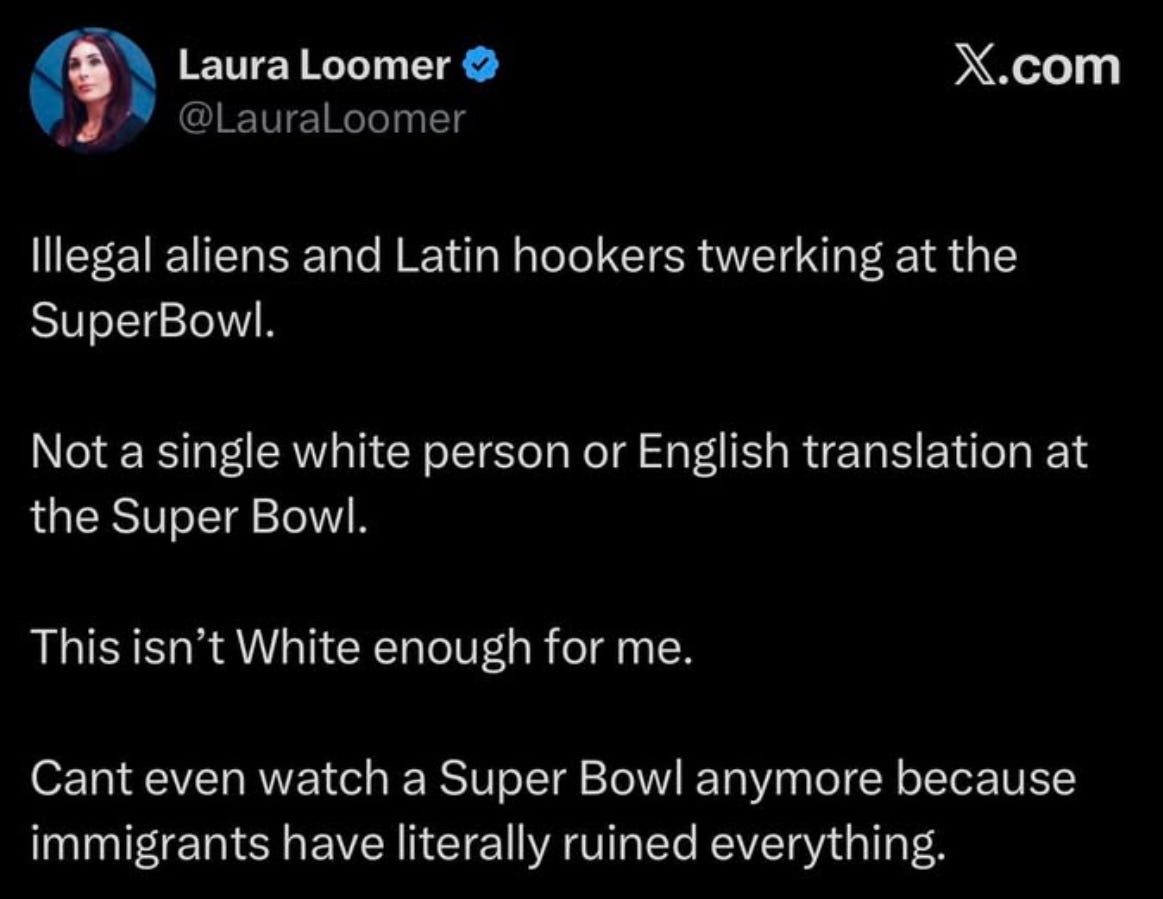 If you asked the average MAGA cult member why they were so upset about this halftime show, they would give you some range of bullsh*t from: