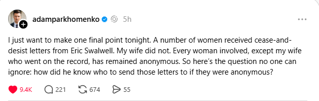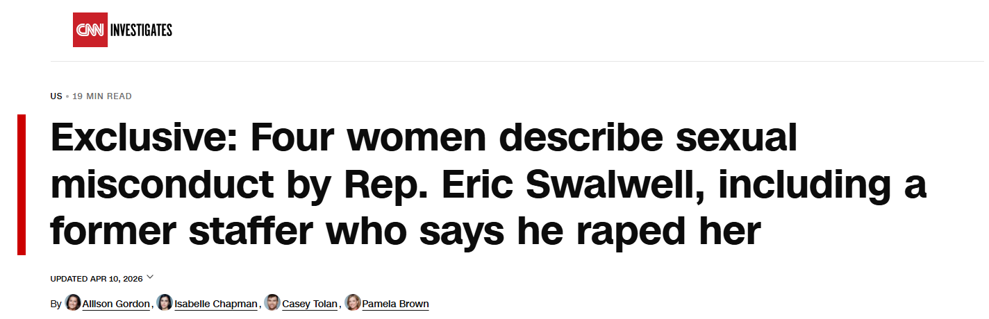 The testimony against Congressman Swalwell is horrific. He should drop out of the California Governor’s race & drop out of Congress.