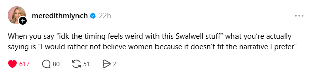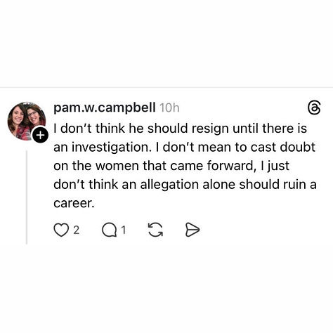 I’ve been floored reading an endless stream of comments like this over the last 48 hours now. So I’ll be clear on my stance - I believe the victims.