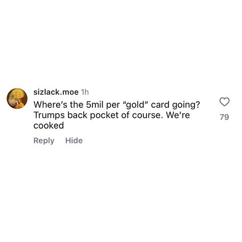 Before I start with my feelings on Trump’s new “Gold Card”, and how it’s just another mark on the long list of Republicans prioritizing the wealthy over the rest of society, let’s first start with this outline from Reuters ⬇️