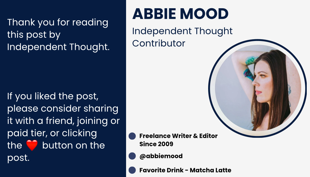 If you liked this post, please click the heart ❤️ button & 🔄 button. This helps Independent Thought get recommended more within Substack.