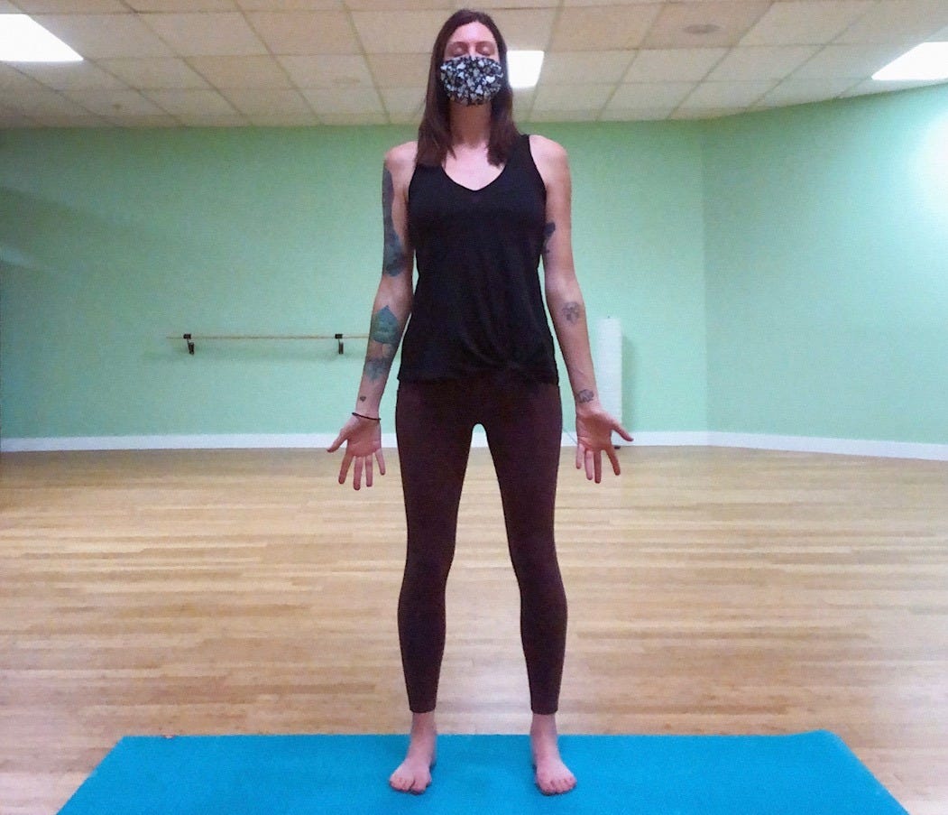 Two more easy practices are the Orienting Practice (from Somatic Counselor/Trauma Specialist/Social Justice Activist/Yogi Hala Kouri) and the 5 Senses Exercise. For the Orienting Practice, move your head slowly from side to side and: notice the colors and textures around you, identify all of the objects in the room that are a particular color, name the objects that you see, or find something really pleasant to look at and really take it in. For the 5 Senses Exercise, notice: 5 things you can see, 4 things you can feel, 3 things you can hear, 2 things you can smell, and 1 thing you can taste. These activities are helpful to bring you back to the present moment.