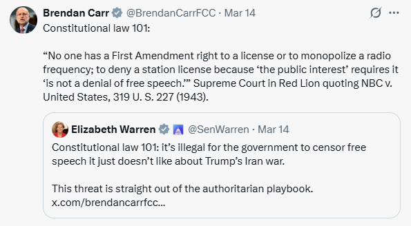 If you’re thinking - this is against the first amendment & a violation of free speech - you would not be alone. It was my first thought & the thought of Democratic Senator Elizabeth Warren, who took to X to call out Carr.